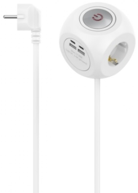 Power strip HAMA-223195 Куб, 3-гнезда, 2хUSB-C/A, 17 W, с превключвател, 1,4 м, бял